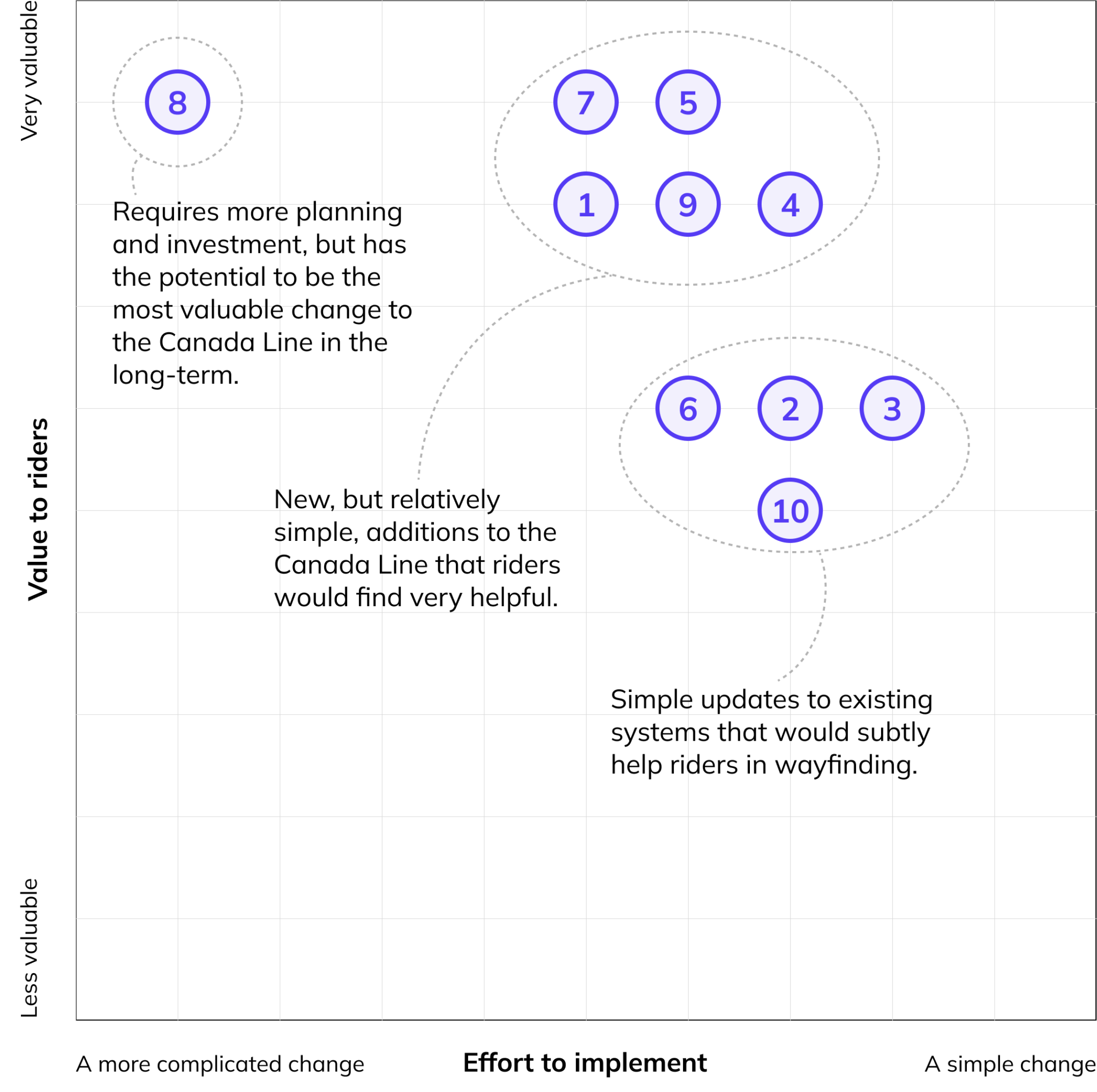 - Highlight the service design pain points on the Canada Line related to wayfinding design